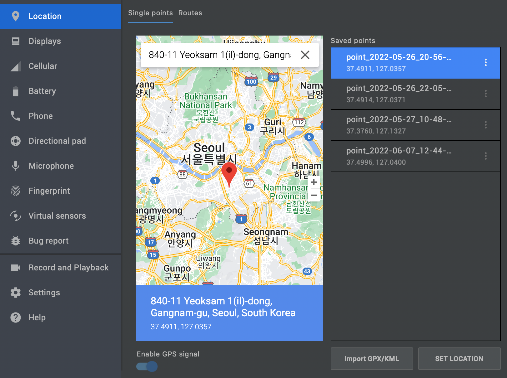 에뮬레이터 GPS 위치 설정