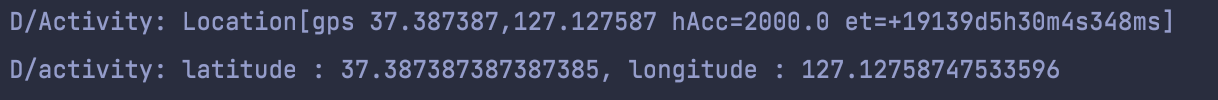Log.d("activity", "latitude : $latitude, longitude : $longitude")