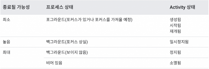 Activity가 종료 되는 케이스